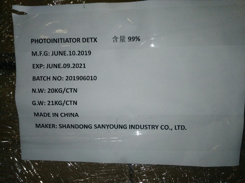 DETX is a highly radical (II) type photoinitiators used together with a tertiary- amine resin, UV polymerization synergist. It is slightly yellow powder. Melting point: 70-75; Absorption Peak: 261,385 nm.